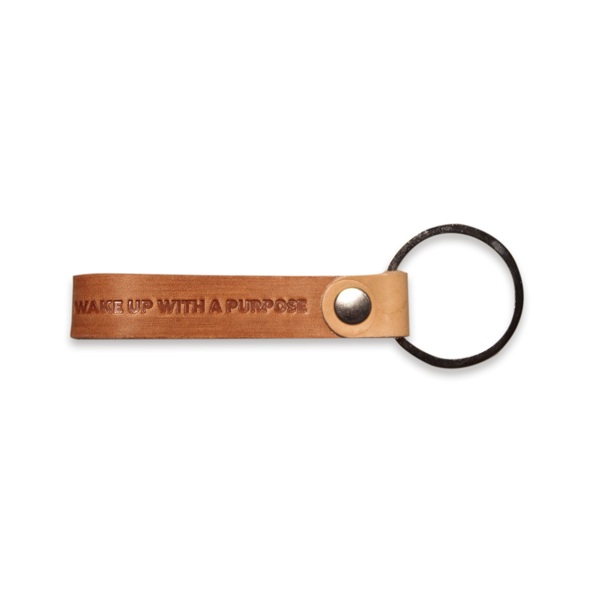 Llavero largo de cuero con logo "Dream days" en parte delantera y eslogan "Wake Up With A Purpose" en la parte trasera. Anilla para las llaves color plata. Efecto desgastado/ vintage.