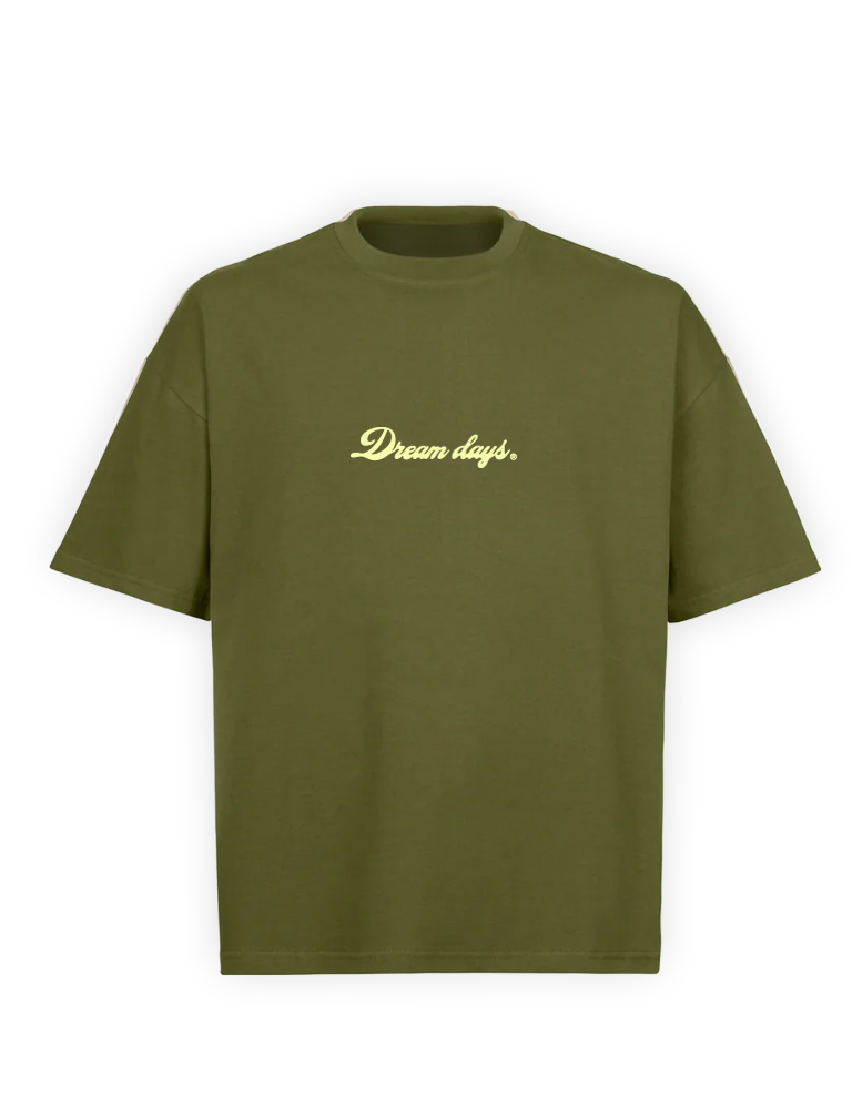 Camiseta oversize 100% algodón (240 GSM). Logotipo largo “Dream Days” serigrafiado bajo el cuello. Diseño “Dream Days” serigrafiado en la espalda.